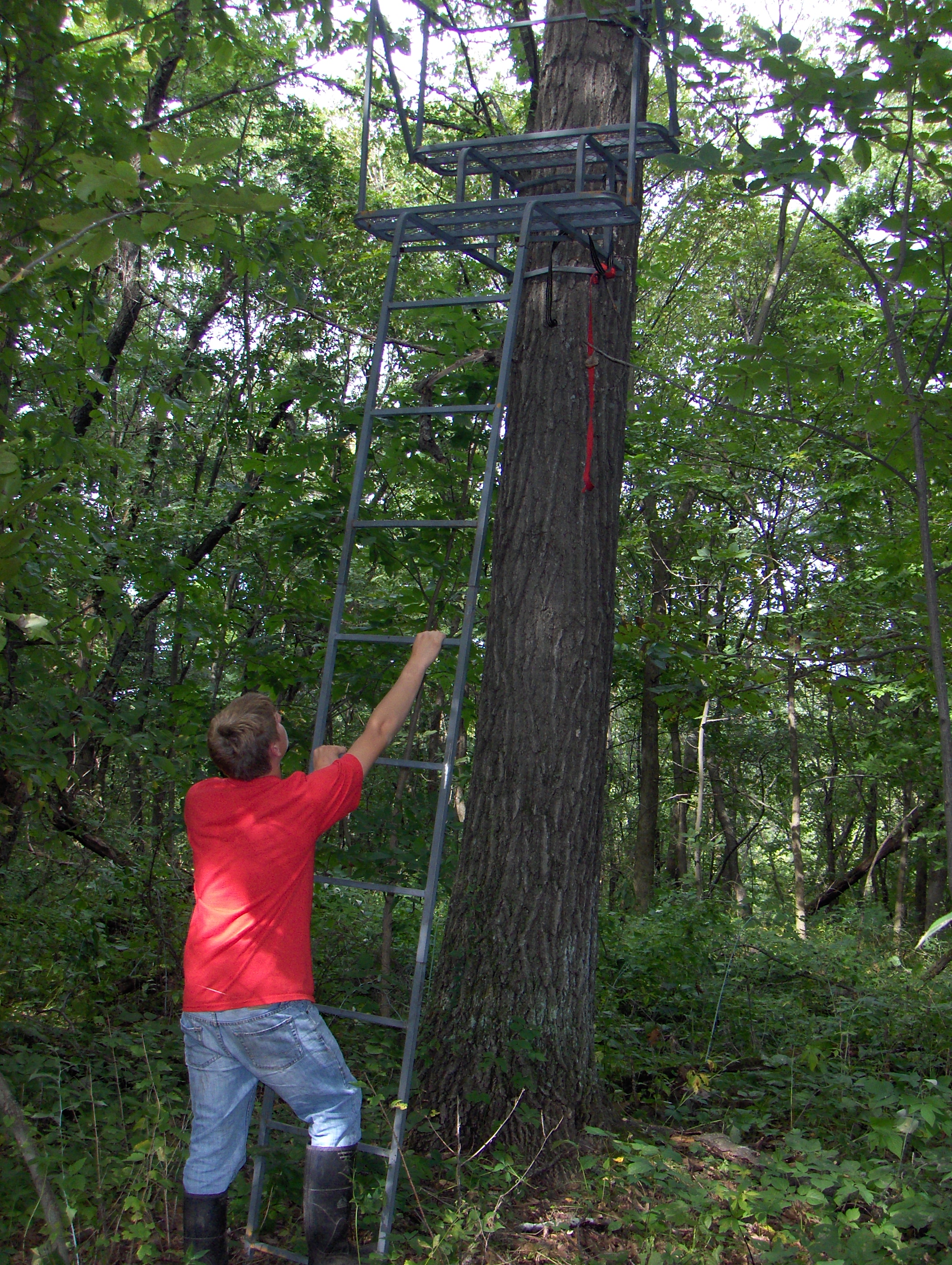 Now is the time to turn our attention to setting up our portable tree stands before the Whitetail Opener in just a week or so. The daytime temperatures and humidity have been so bad lately that I don’t hang any more than three stands per outing just because you get so doggone worn out in this heat. Accidents usually happen when you “push the envelope”… stick to doing what you are comfortable with and no more.