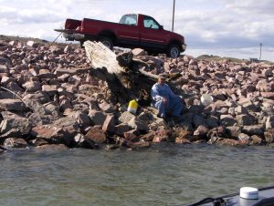 There is something about this river in March and April….the first open water fishing of the season, the natural sights, the wildlife…. it’s probably my favorite place to be in the Spring. I just returned from the Missouri recently and found that the walleyes are behaving well in advance of their normal calendar dates. Usually they start their spawning rituals in the middle of April but just a few days ago I found them already on the “rocks” and staging for the pending spawn. I knew something was “up” when I arrived into the town of Chamberlain and immediately noticed the shore fisher-people lined up along Interstate 90 and the adjoining jetties.